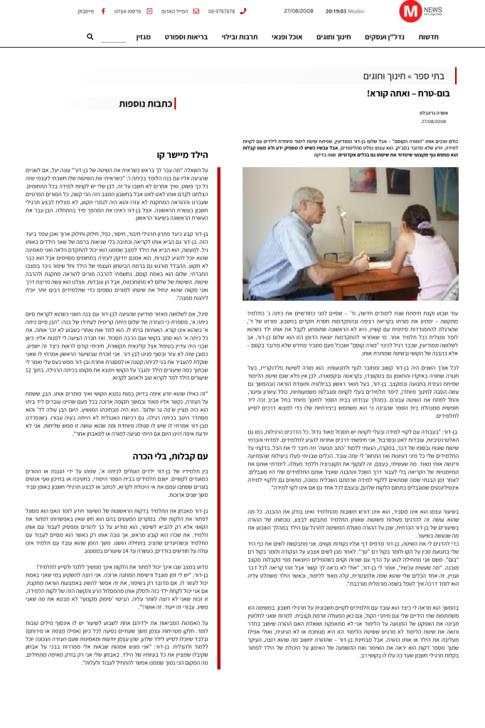 אשרה גרינבלט, 27/08/2008 כולם מכנים אותו "המורה הקוסם" – אבל שלום בן-דור ממודיעין, שפיתח שיטת לימוד מיוחדת לילדים עם לקויות…