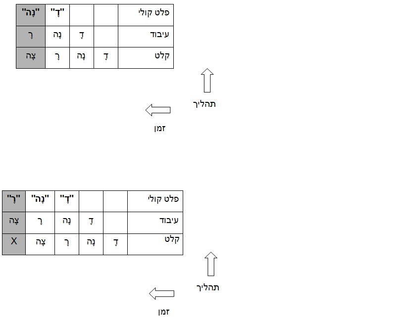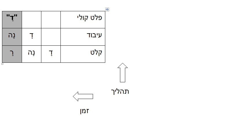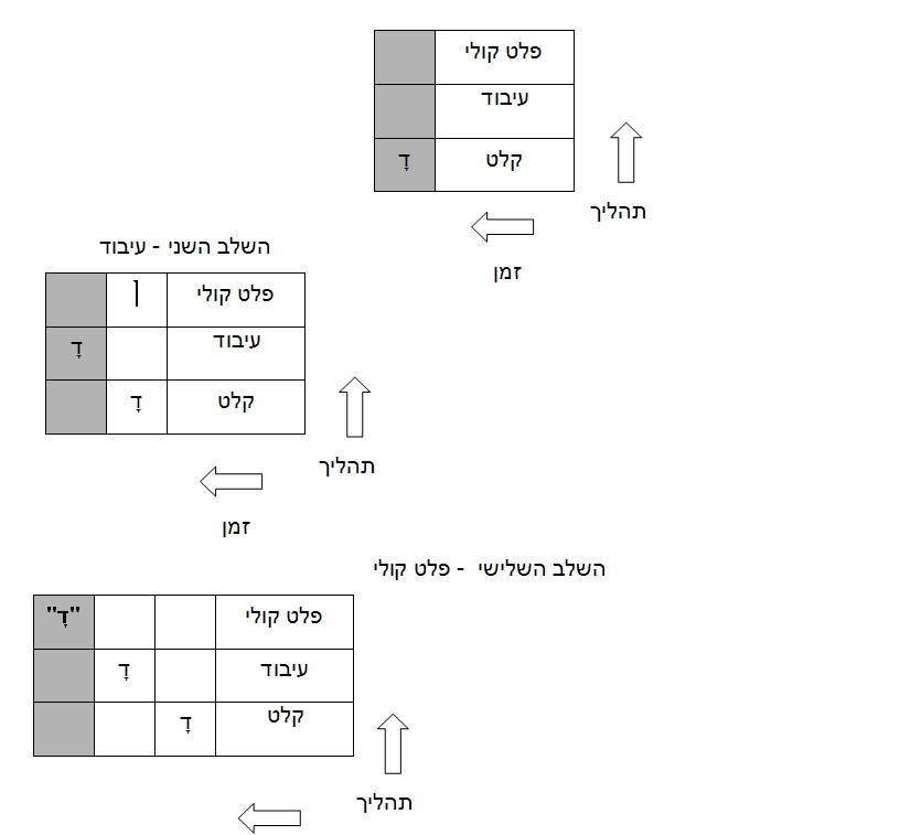 על פי סכמת הפעולה שאני משתמש בה, אם נציג בפני הקורא קלף עם הצירוף דָ, הוא יתבונן בו (קלט), יפענח אותו (עיבוד), ויאמר "דָ" (פלט).